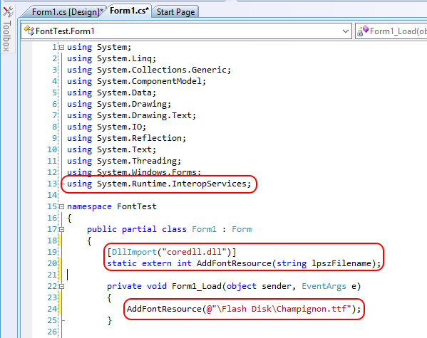 AddFontResource(@"\Flash Disk\Champignon.ttf");