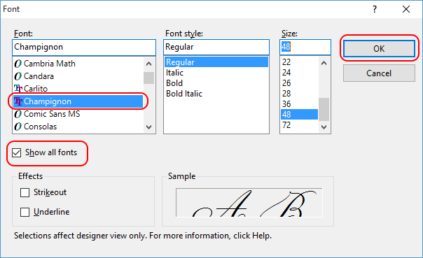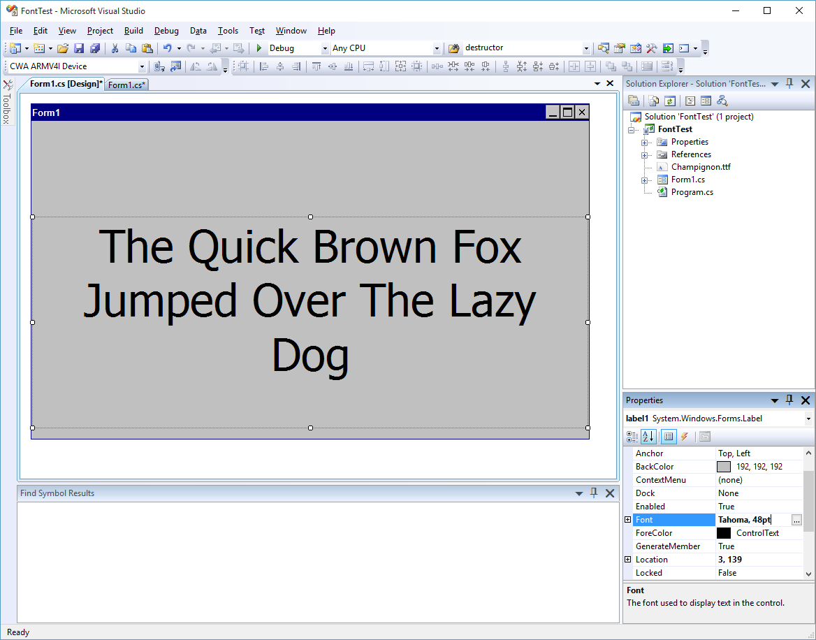 2. To view the font in the Visual Studio designer, change the control's font in the Visual Studio properties window.